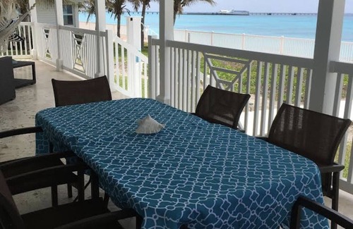 This home is located on a semi-private Beach in Bimini Bay and walking distance from the Casino, Hilton Hotel, restaurants, Mega Yacht Marina and Pool. The house itself is light, comfortable, and cozy with a family-friendly ambiance. The back porch provides a relaxing atmosphere with a front-row seat to sunsets from your own personal hammock. The outdoor shower and dining space are an added bonus. Boat docks available upon request!