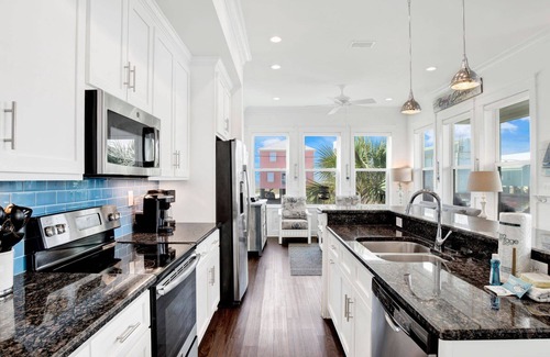 • Beautiful, fully equipped kitchen with everything you will need, including a Keurig. The dining area seats six, with four bar stools for additional seating.