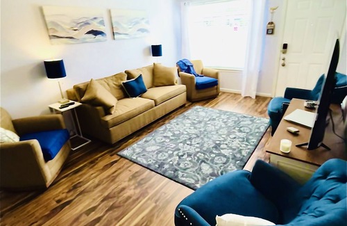 First floor unit that is fully stocked with anything you will need to have a relaxing getaway. From fine dining to enjoying the water at the pool. Fishing, paddle boarding, shopping all at your fingertips!
