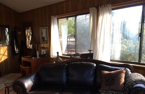 Charming yet spacious cabin nestled in the heart of the Blue Ridge Mountains at the foot of Mt. Pisgah and Cold Mountain. We have two queen sized bedrooms, a large living room and a bonus game room with dvd's, chess, backgammon and more. Huge deck for rocking and a real Wood burning fireplace. Located on a paved road with super easy 12-15 minutes from the Blue Ride Parkway, the famous Pisgah Inn and Sliding Rock Wilderness Area for world class hiking. We have the East Fork of the Pigeon River running along Highway 276 and you are about 35 minutes from Asheville, only 20 minutes from Waynesville and about 25 minutes from Maggie Valley. It is the perfect location to get away from it all yet be near everything the area has to offer. We are also close to Looking Glass Falls and Sliding Rock.