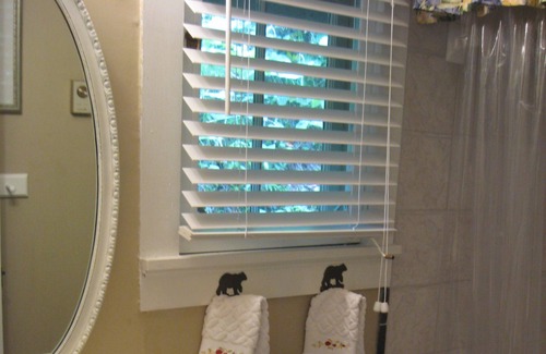 The Blue Shutter Cottage is a cozy one bedroom, one bath cottage. It's just two cottages away from the pool and clubhouse...yet it is tucked back against the mountain to insure privacy. Even though it's a charming early 20th century structure that was part of the original Hiwassee Dam village, it's been modernized with central heat & air and appliances, including a small washer & dryer. Although the cottage doesn't have internet service (we don't have any reasonably-priced options), free WiFi is available 24/7 at the clubhouse that is within sight of the house. A land line telephone with free long distance in the continental U.S. is provided in the cottage!