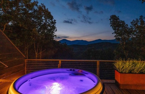 Modern studio cabin in the North Georgia mountains! The north-facing wall is a set of 8-foot sliding doors you can open wide to hear the birds singing to you, and feel connected to outdoor luxuries including hot tub, gas fire pit, breakfast bar, and showers with a million-dollar view you won’t believe until you see it in person.
