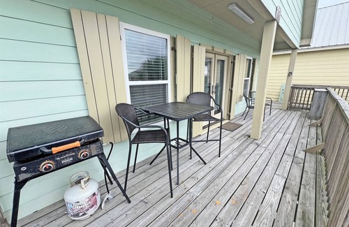 This two-bedroom villa with an upstairs loft is the only unit in Blue Water Villasthat features its own private parking and cemented area, providing you withmore space and privacy. You’ll enjoy a covered deck and a private downstairs hangout area—perfect for boiling seafood or relaxing outdoors. The beach crossover is just a short walk away, making it easy to get your toes in the sand anytime.