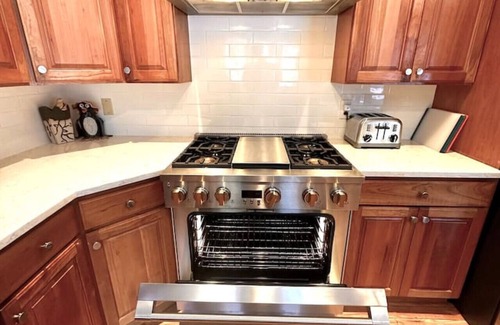 Kitchen is fully stocked with Cuisinart Coffee maker, Vitamix Blender, 36` Monogram gas cooktop & gas oven, side by side refrigerator, Monogram dishwasher, dishes, silverware, wine glasses, etc.