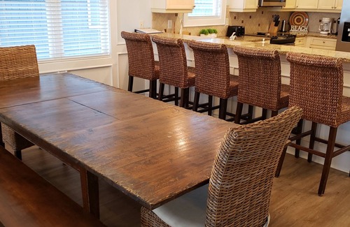 Blueberry Bungalow is a beautifully decorated oceanfront duplex designed to be your perfect home away from home. With a wide-open floor plan connecting the kitchen, dining area, and living room, this luxury retreat is ideal for entertaining and spending quality time with family and friends. The gourmet kitchen is fully equipped, making meal preparation effortless, whether you're cooking indoors or grilling outside. After dinner, unwind with a cup of coffee or a glass of wine on the oceanfront deck, take in the sunset, or enjoy a refreshing dip in the lighted swimming pool. Modern conveniences such as an elevator, a full-size washer and dryer, and an extra refrigerator/freezer on the ground level ensure a comfortable and stress-free stay.