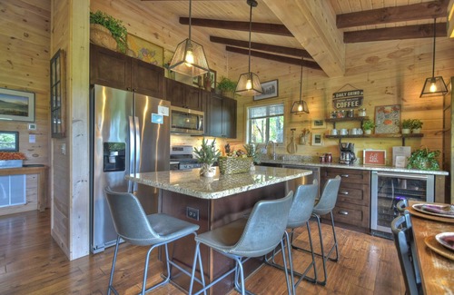 Newly renovated from top to bottom, this secluded rental is everything dreams are made of. One level living offers all ages the ability to take advantage of the cabin grounds. Spacious decks with year round mountain views and firepit set the scene for a relaxing night in with family & friends or take advantage of the short drive to all of the new eateries & breweries in McCaysville, GA; only 5 minutes from the cabin. Floor to ceiling window pane paint the perfect background to catch the sunset from the living room or King master suite. This cabin has all the special touches to make your vacation one your family will remember.