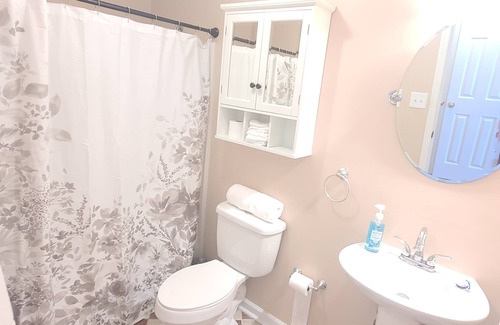 Home includes wifi, rokus, and cable. Coffee and tea bar with the necessities, 1 car driveway, can park in front of the house and parking across the street for extra parking. There is also a fire pit (logs not included) and a charcoal grill.