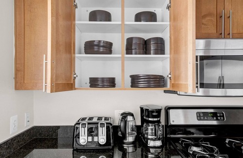 This furnished home is located in Pentagon City in Arlington County, across the Potomac River from Washington DC. Amazon has chosen the area for its new headquarters. The neighborhood is the perfect mix of convenience and culture, with lots to do in the area plus a direct city connection via the Blue and Yellow lines of the DC Metro. Pentagon City has a well-attended weekly farmer’s market, as well as outdoor movie screenings in the summer. You can easily shop for groceries at supermarkets or Costco, and there are plenty of restaurants if you would rather not cook. Pentagon City is home to the Fashion Centre mall, with both national brand retailers and independent shops and restaurants.