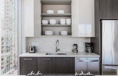 Thoughtfully designed with bespoke finishes, modern furnishings, and a fully equipped kitchen, you’ll enjoy that “I’m home” feeling with this Blueground apartment. Whether you’re lounging in your spacious living room streaming the latest and greatest entertainment on the smart TV or premium wireless speaker, or getting some well-earned rest on the superior quality mattress with luxury linens, you’ll fall in love with everything this Near North apartment has to offer. This apartment also offers in-apartment laundry.