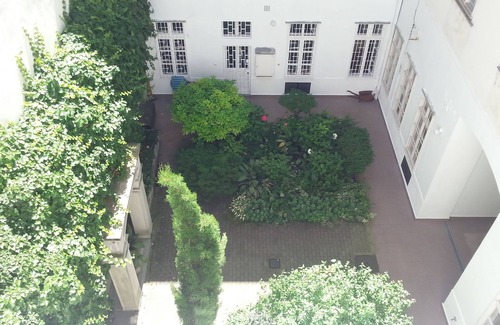 The apartment is situated on the 2nd floor, it features a comfortable, stylish, 62 m2 (+10 m2 gallery) spacious and quiet apartment with windows overlooking a beautiful communal garden with a unique ancient fountain. Comfortably suits 4 people but groups of up to 8 can be accommodated. High ceilings (4.5 m), huge windows, kitchen, bathroom.