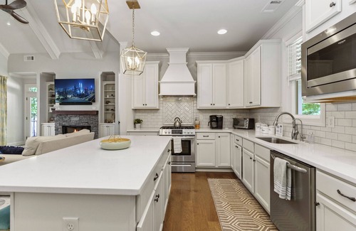 Includes 2 common spaces with comfortable seating and large TVs, one on the main floor and one in the basement. Great modern kitchen and bathrooms come equipped of everything you will need to fully enjoy your time at the lake.