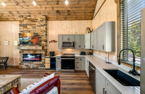 NEW! Introducing Bobber Bungalow, a luxurious newly built cabin with lake side views and fun amenities. Enjoy the spacious decks with outdoor dining & lounging options to optimize your enjoyment of the beautiful views and fresh air. Take a relaxing soak in the hot tub & take advantage of the Game Room with 3 Arcade Games, Foosball Table, & Large TV! The Beautiful Design & Open Concept floor plan are perfect for a getaway with family or friends. Don't miss your chance to book this amazing cabin!