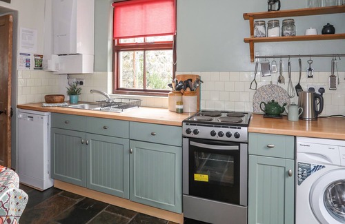 Amenities: Gas central heating. Oven, hob, microwave, fridge/freezer, washing machine and dishwasher. Travel cot and highchair available. TV and WiFi. Fuel, power and starter for woodburning stove inc. in rent. Bed linen in rent. Parking. Small patio area with picnic table. One well-behaved dog welcome at an additional £20 charge. Sorry, no smoking. Shop 1.3 miles, pub 0.1 miles and beach 1.6 miles. Note: This property is next to a pub. Note: The garden is not enclosed. Note:Towels not provided.