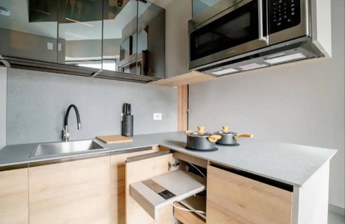 Welcome to the Bogotá Panorama Penthouse, a pinnacle of luxury in the city's most desirable area. This top-floor sanctuary boasts panoramic views of the cityscape. The elegantly appointed interiors, designed for comfort and style. Dive into the refreshing pool, unwind in the chic bar, dine in the exquisite restaurant, stay fit in the state-of-the-art gym, work seamlessly in the modern coworking space, and rejuvenate in the serene spa. Ideal for a lavish, convenient, and unforgettable stay