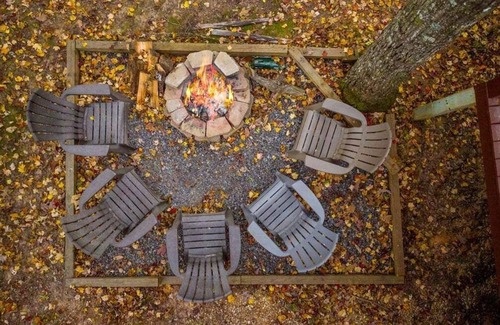 Another few steps down from the lower deck you will find our recently upgraded firepit area, don't' forget to pack the s'mores supplies!