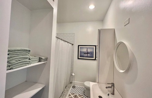 The house includes 2 bedrooms, one with a king size bed and one with a full. The room with the king size bed has an updated ensuite bathroom, and there is an additional bathroom down the hall as well. The cozy living area opens to the bright and sunny dining area and kitchen. There's a large dining table to enjoy meals at home, and the kitchen is fully stocked to help you prepare them. The back deck is the perfect spot to enjoy your cup of coffee in the morning!