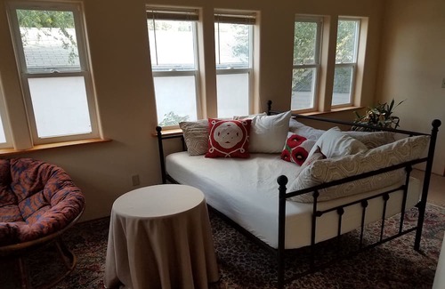 Boho bungalow: an artist's cottage filled with vintage charm and character. Original architectural details such as phone nook, cast iron soaking tub combine with modern amenities such as sun room, and new gas range in fully appointed kitchen. Private fenced backyard with patio furniture and grill for relaxing. Located in the heart of the historic district 5 minute walk to downtown and WNMU.