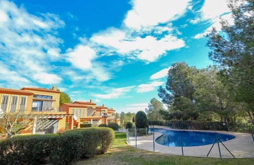 Golf Bonmont: Cosy, comfortable apartment block "Bonmont". In the resort 4 km from the centre of Miami Platja, 4.5 km from the sea, 4.5 km from the beach, on the golf course. For shared use: property with lawn, swimming pool kidney-shaped (seasonal availability: 01.May. - 30.Sep.). Outdoor shower, pool maintenance by the owner/gardener, parking at the house. Supermarket 4 km, restaurant, bar 800 m, bus stop 3.4 km, railway station "Hospitalet Infant" 9 km, sandy beach 4.5 km. Nearby attractions: Parque Portaventura 28 km, parque acuático Aquopolis 31 km, parque Natural del Delta del Ebro 53 km, Tarragona 37 km, Reus 30 km, Barcelona 132 km. Please note: car recommended. Groups of teenagers on request only. 5m from the golf course “Hoyo 13”. Facilities of the Resort but with extra payment: Olympic swimming pool (July and August), football field,tennis, padel tennis, fitness, golf, Pitch and Putt, club house restaurant, shop.