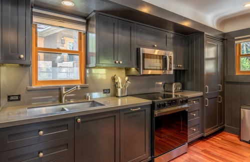 Guests share a newly remodeled bathroom on the lower level with a step-in shower, and a separate powder room on the main level. A private washer and dryer, complete with complimentary laundry pods, adds convenience, especially for longer stays.