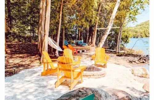 This amazing 4 season cottage located just 2.5 hours north of Toronto. Great for extended families up to 8 guests. Spacious and posh! Lakefront features a quaint shoreline with rustic natural features, water trampoline, lilypad island, canoe, kayaks, paddleboards, 20 min to Bracebridge, Huntsville, Dorset, and Dwight.