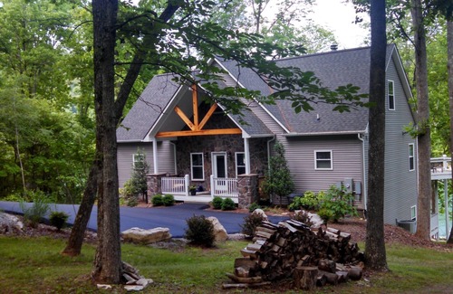Cathedral ceilings; Hardwood floors; LCD TV with satellite, Blu-ray player and a sound bar; and Wood burning fireplace.