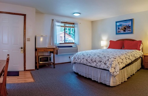 These private rooms have King or Queen-sized beds and feature Jacuzzi tubs, comfortable seating and beautiful outdoor views. With no television to distract you, your room is located just steps away from a lovely stroll on miles of trails through the Cascade Siskiyou National Monument. A mini-fridge, microwave, and coffee maker are available for simple meal prep.
