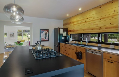 Find delight in different living areas of the house both perfect for social gatherings, reading a book, or watching your favorite show. Cook delicious meals with the simply rustic, sleek kitchen fully equipped for all your cooking needs or enjoy a snack at the island. Taking a nap? You’ll get quality rest from one of five comfortably made beds either upstairs or on the lower level. At Borealis Haus, you’re guaranteed a most memorable and unforgettable stay.