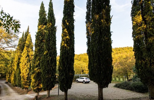 The property, surrounded by greenery among olive trees and cypress trees, is located on a beautiful hill in the Tuscan countryside of Mugello with breathtaking panoramas such as the famous cypress tree-lined avenue of Galliano. It has a large park where you can walk inside; it has 2 barbecue areas with chairs and tables in addition to other social areas such as "the Piazzetta". The uniqueness of the property is represented by a beautiful pool equipped with sun loungers and umbrellas with a fantastic panoramic view of the hills of Mugello and Bilancino Lake.