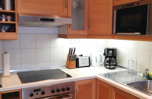 For those who like comfort, this apartment is excellent. The well-equipped american-style dining room meets all your needs. The modern living room has a comfortable sofa bed for up to two more people to sleep comfortably.