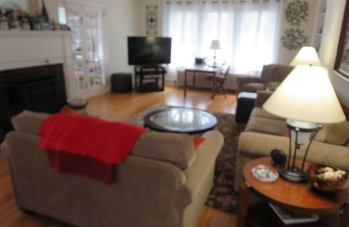 Large comfortable and well-appointed four bedroom home in the State College Borough Highlands. Sunroom and large living room and dining rooms with tables. Double fireplace and first floor laundry room.