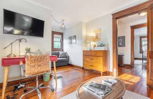 Southern charm and serenity await in this darling 1899 Craftsman style suite. Nestled on a quiet street in vibrant East Nashville, the private one bedroom suite is located just steps away from the trails of Shelby Park. The renovated space is located on the second level, and features a private external entrance up the stairs on the side of the house, a queen sized bed, a full bathroom with a tub and separate shower, a cozy reading nook, a desk, a kitchenette, and a convenient location.