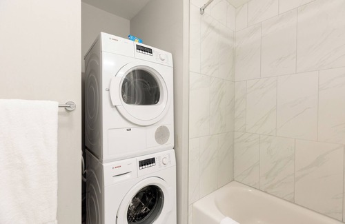 Enjoy the cultural capital of Boston, the Fenway Cultural District, while staying in this gorgeous one-bedroom apartment with floor-to-ceiling windows, high ceilings, German-engineered stainless steel appliances, white quartz countertops, European-style frameless kitchen cabinets with generous storage, smartphone-controlled lighting options, spa-inspired bathrooms, wide-plank flooring, wall-to-wall carpeting in the bedrooms and a front-loading washer and dryer in the apartment. All beds provided are, fitted with plush linens and pillows. All Furnished Quarters apartments include24/7 guest service.