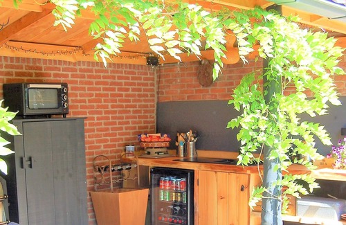 In a quiet street, close to the village center, with free on-street parking you will find our apartments. In front of the house is a covered bicycle parking with electricity for battery charging. The apartment has a bedroom, a bathroom, a well equipped kitchen area, a private terrace with morning sun -dining table and relaxing chairs. In the Courtyard you will find a covered lounge area with heater, self service minibar and bbq facilities.