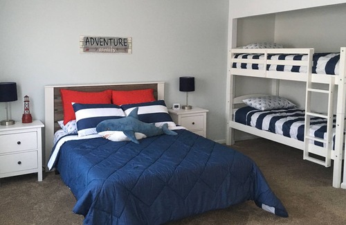 Main bedroom has a Queen Serta memory foam mattress and a single bunk bed.