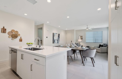 Inside, you'll discover a beautifully appointed home featuring two comfortable bedrooms and two designer bathrooms. The heart of the home is the fully equipped modern kitchen where you can prepare memorable meals with high-end appliances including a dishwasher, microwave, refrigerator, and oven. The open concept living area invites you to unwind with cable TV and seamless WiFi connectivity throughout.