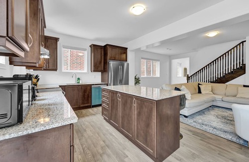 Brand New 2Storey+Ping Pong+65" TV is located in Kitchener. Brand New 2Storey+Ping Pong+65" TV provides accommodation, featuring Internet, Kitchen, Laundry, among other amenities. This House features Internet, Kitchen, Laundry, to make your stay a comfortable one.