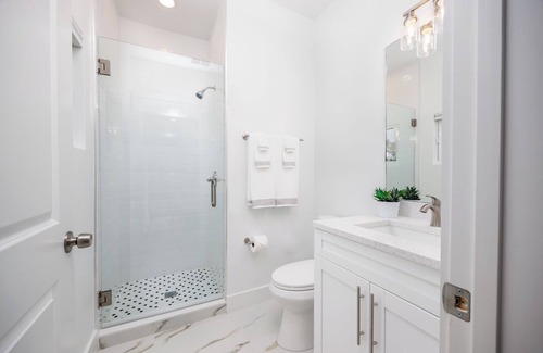 This moder single-family home features two split bedrooms outfitted with luxurious king-sized beds, and two full bathrooms. Traveling for work, we've got you covered with a dedicated remote workspace with high-speed Wi-Fi to stay productive during your stay.