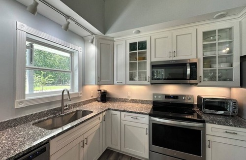 Step inside to find a bright, open-concept living space with stylish furnishings and thoughtful touches throughout. The fully equipped kitchen features modern appliances, granite countertops, and all the essentials to prepare meals at home. Enjoy coffee or cocktails on the private patio, or wind down with a movie night in the cozy living room.