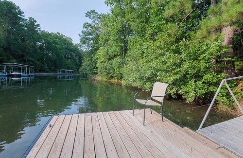 If you love swimming or kayaking, you'll love the dock just 1/10 of a mile throught the woods from the property. The dock is uncovered, so you can tie up your boat (must be a shallow water boat) during your stay, or sit back on the dock and enjoy the peaceful setting of the cove. Boating limited to those vessels suited for more shallow water, but it is just around the corner from the deep emerald waters of Keowee!