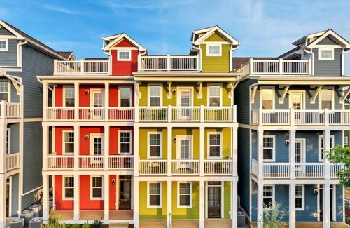 This 4 bedroom, 3 bathroom townhome features not only a spacious rooftop, but multiple balconies and a covered front porch to take in the outdoors. There is a fully equipped kitchen with 4 bar stools that flows openly into the living room where a flat screen Smart TV is mounted on the wall.