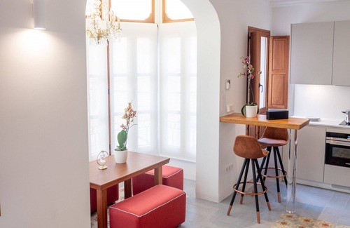 Very nice refurbished apartment with 1 double suite, complete bathroom, complete kitchen and cozy and comfortable seating and relaxing areas, located inside the old town near the Dalt Vila entrance in a very nice and sunny street and a historical building, where it has been respected its façade and all its details, even having recovered and traited part of its historical floors as “flooring carpets”. Live in an apartment which transmits all the history of the old Ibiza with all modern and new comforts