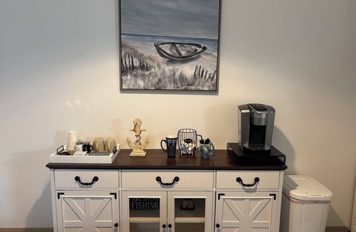 Get your morning started the right way with our fully-stocked coffee bar (including hot chocolate and tea). Relax on the balcony or in our newly remodeled living room. Sleep in comfort on the new king-sized bed. Enjoy other amenities such as in-house laundry, high-speed wifi, a fully stocked kitchen, streaming TVs, AC, and heating. You are sure to feel right at home.