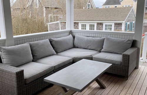 Located in the Brant Point area, it is a short walk to Town and Jetties Beach. This light and bright house is newly renovated. Interior: Enter into an open and spacious living and dining room with fireplace, cathedral ceiling, and hardwood floors. To the left of the living room is a bedroom with Queen bed and private bath with shower and stack washer/dryer, also accessible from the kitchen. To the right of the living room is a Queen bedroom and Twin bedroom. Full bathroom. Kitchen has great counter space and glass fronted cabinets. French doors lead to a great outdoor covered porch with a gas fireplace good seating. Stairs down to brick patio with gas grill and outdoor dining area. There is an outside shower. Comfortably furnished house. Central AC. There is a studio cottage that the owner uses on and off during the summer. Click on Ask Manager a Question, to discuss details. 508-228-0976