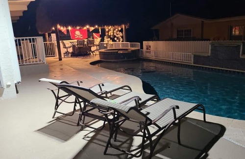 The house has a private pool and a jacuzzi with jets and soothing waterfalls for your relaxation. There is a tiki hut right by the pool for your enjoyment. There is plenty of dock space for 1 boat or watercraft. Outside we have a fish cleaning station and an industrial ice maker that is at your disposal. There is also a well lit, covered cooking area with a brand new Stainless steel BBQ with four burners and a side grill for all of your outdoor cooking needs.