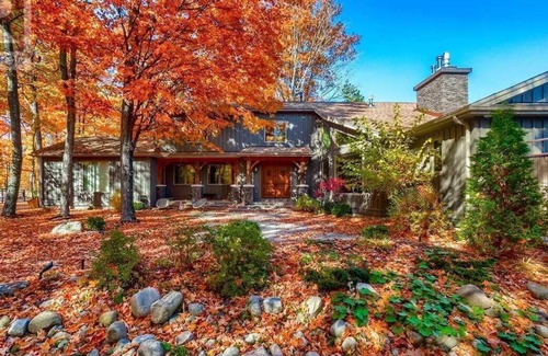 Stay in this spectacular custom-built home. The cottage is approx.. 6200 sqft of luxury, situated on one of the largest private beaches in the area. Enjoy extensive lake views from every room with floor to ceiling windows. Sit back and relax during every aspect of your stay as the property is a smart home and everything can be operated with the touch of a button. Stay warm with heated hardwood floors and fireplaces in every room, or sun yourself on one of the many private decks located around the property. With four fridges, modern appliances, a gym, a pin-ball machine, pool table and shuffleboard table this rental is sure to have something for everyone.