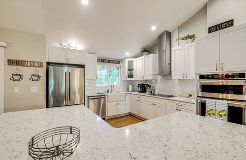 Experience tranquility at this serene and spacious 3-bed, 2-bath vacation rental in Bremerton. Perfect for a couples retreat, this dreamy home embraced by the forest features a farmhouse-themed interior with a cozy fireplace, a sunlit kitchen for delicious homemade meals, and a fire pit for evenings spent stargazing. While in town, consider watching the boats sail by at the Bremerton Boardwalk, hiking the scenic trails of Illahee State Park, or taking a day trip to explore the best of Seattle!