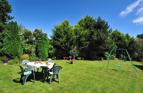 Amenities: Gas heating with electric fire stove. Electric oven, electric hob, microwave, fridge with ice box, washing machine. TV, CD player, WiFi. Fuel and power inc. in rent. Bed linen and towels inc. in rent. Off-road parking for 2 cars. Enclosed garden with raised patio, lawn, play area and furniture. Highchair and travel cot available on request. Pet-friendly, sorry, no smoking. Shop 0.2 miles, pub 0.1 miles. Note: A maximum of one dog accepted. Note: River next to property, supervise children at all times Note: please be aware that this property only accepts a minimum of 3 nights.