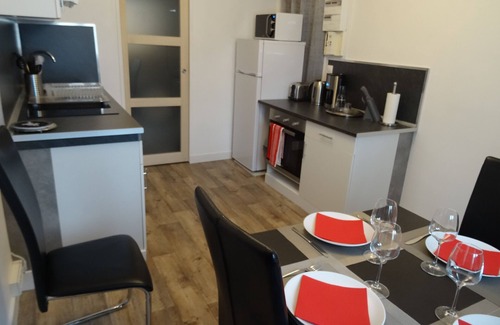 - An equipped kitchen (oven, induction hob, dishwasher, fridge, microwave, Rice cooker, steamer, toaster, kettle) with a kitchenette for four people
