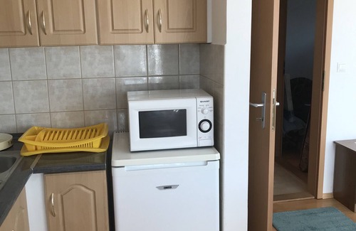 Bright 1 bedroom apartment with washing machine, airconditioning and a bike is available for short or long-term rental for 1-4 people. The apartment is on the 1st floor of a newly built building with an elevator in a quiet location next to a forest and only 800 meter to the thermal lake of Héviz. There is a spacious living room together with a kitchen, 1 separate bedroom, a bathroom with a shower and toilet and 2 balconies, one from the bedroom and one from the livingroom/kitchen.