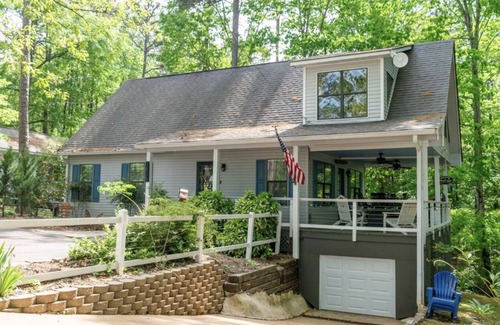 This fun home features 4 bedrooms, 2 bath, large porch with a charcoal grill, fire pit, 2 car garage (can store boat inside or outside) & more! Porch has a lake view of the marina. Plenty of parking area for cars or a boat. Lots of grass for the kids to play or enjoy a game of cornhole with family and friends. Kitchen is fully stocked. There’s also an additional ice maker for the cooler. Board games are available as well as a full sized new ping pong table in the garage. Walking distance to the marina for great food, boat rentals, paid boat storage (marina boat storage not included,) and a shop.